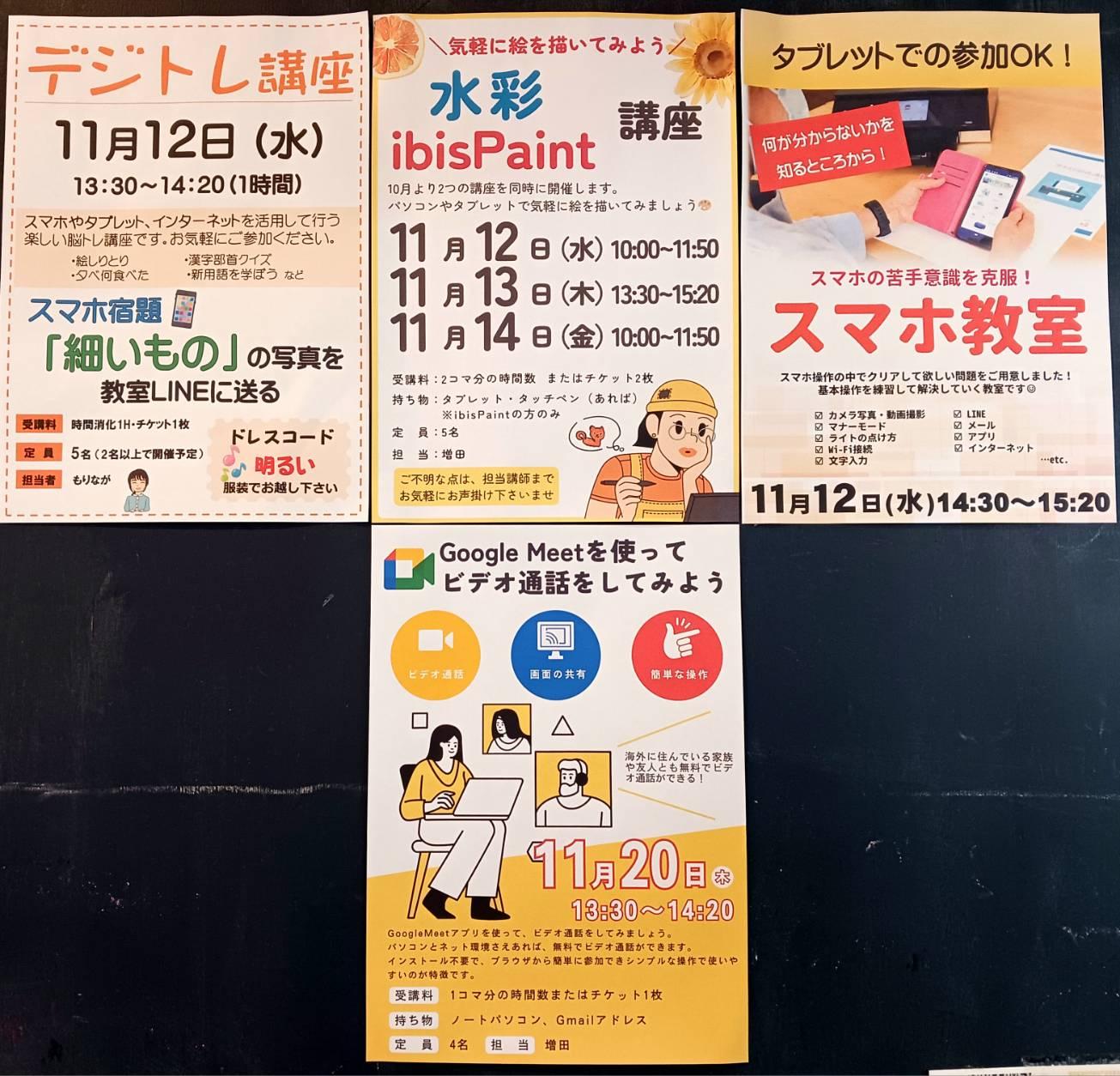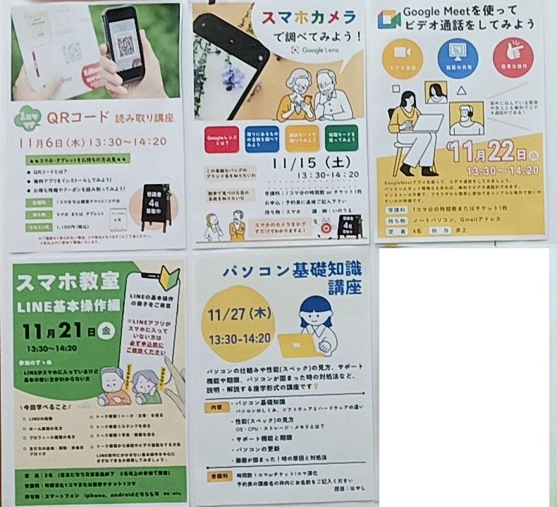 スマホ教室、メルカリ講座、Instagram講座など各種講座の参加が可能です。